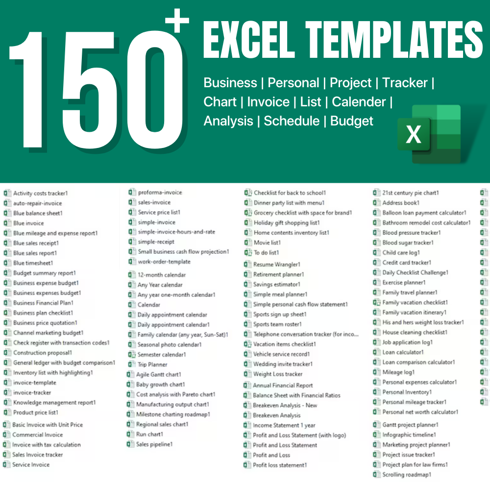Boost productivity and simplify your work with the 150+ Excel Templates Collection – a comprehensive bundle of ready-to-use spreadsheets designed for businesses, freelancers, students, and professionals.